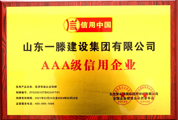 6、3月3日,山东一滕建设集团有限公司荣获AAA级企业信用、企业资信等级系列证书。