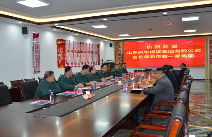 兴华集团党委副书记龚学文对一滕集团的热情接待表示感谢,并就兴华建设集团的产业布局、企业文化、党建统领以及创新发展等多方面内容进行了介绍。他表示双方产业相融,在企业文化、管理理念等方面具备一致性,希望双方能优势互补、强强联手,促进业务共同发展,并就下一步双方合作达成共识。