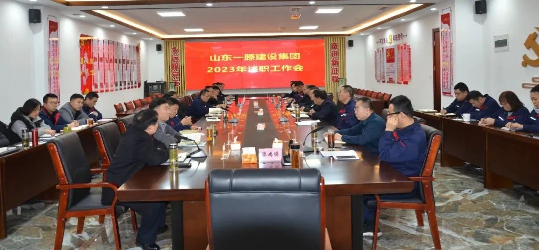 2024年1月10日下午,一滕建设集团2023年述职工作会在一滕大厦二楼会议室召开。集团党委书记、董事长滕鸿儒,集团副总经理陈磊、张卫东以及建设集团领导班子成员、各业务部经理、各职能科室负责人出席会议。会议由集团党委副书记、副总经理刘文东主持。